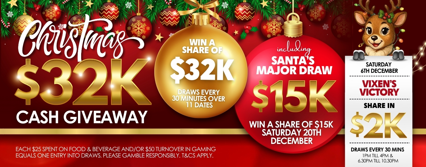 Then join us on Saturday 20th December for our SANTA’S MAJOR DRAW worth $15,000!